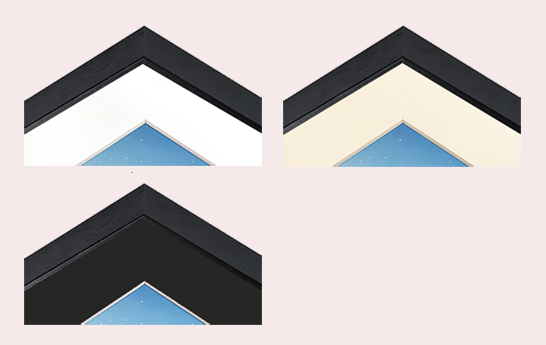 - 3 cm wide passepartout (white, creme or black).