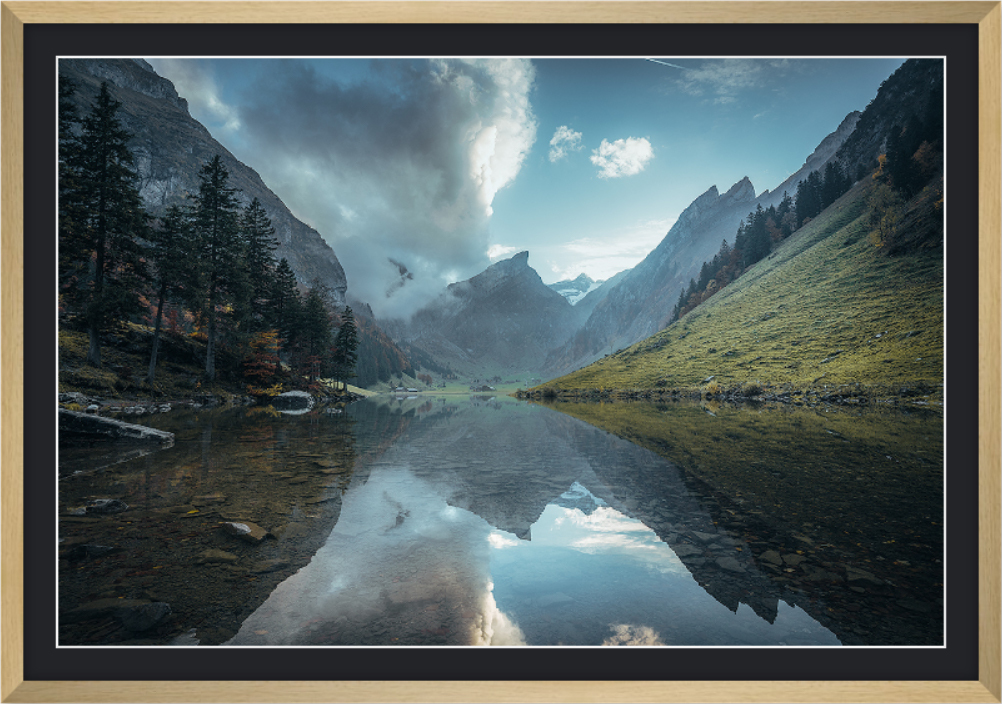 Die wohl edelste und hochwertigste Darstellung Deines Wandbildes. Das Alu-Dibond Fineart Hahnemühle wird in einem edlen Schattenfugenrahmen präsentiert. Die matte, weiß lackierte Holz-Schattenfuge bildet für lebendige Landschaftsbilder den beruhigenden Kontrast und unterstreicht die Wirkung des Motivs an der Wand. Mehr Infos >