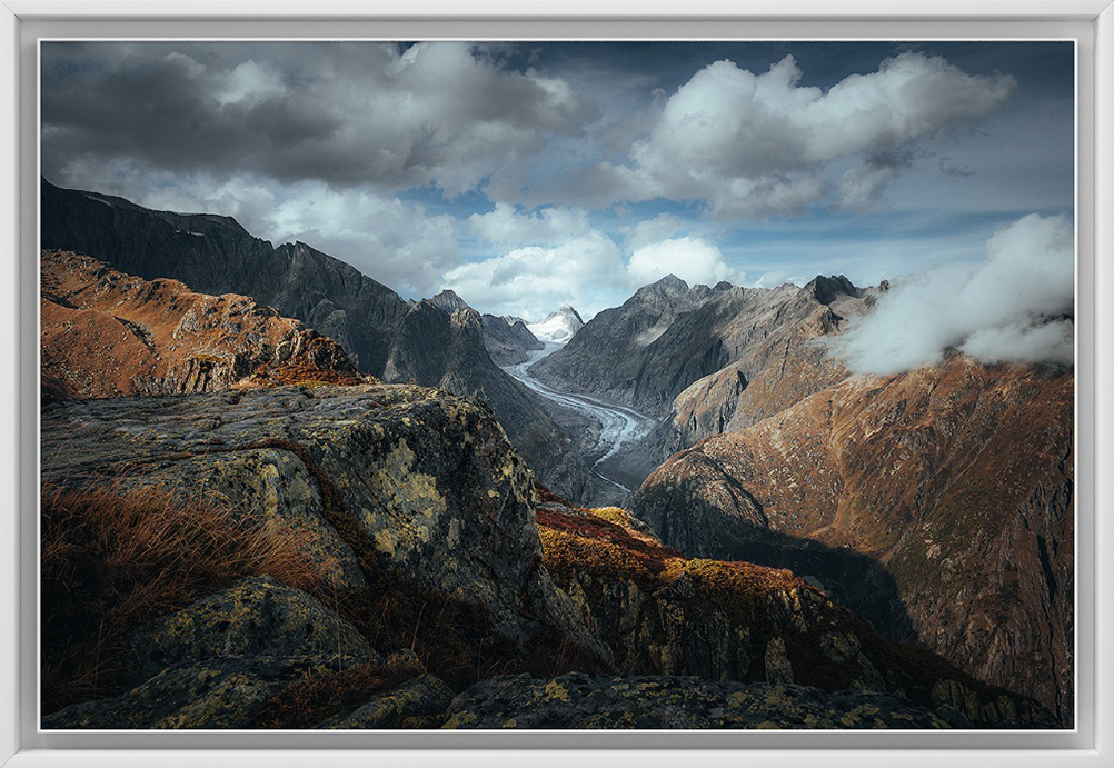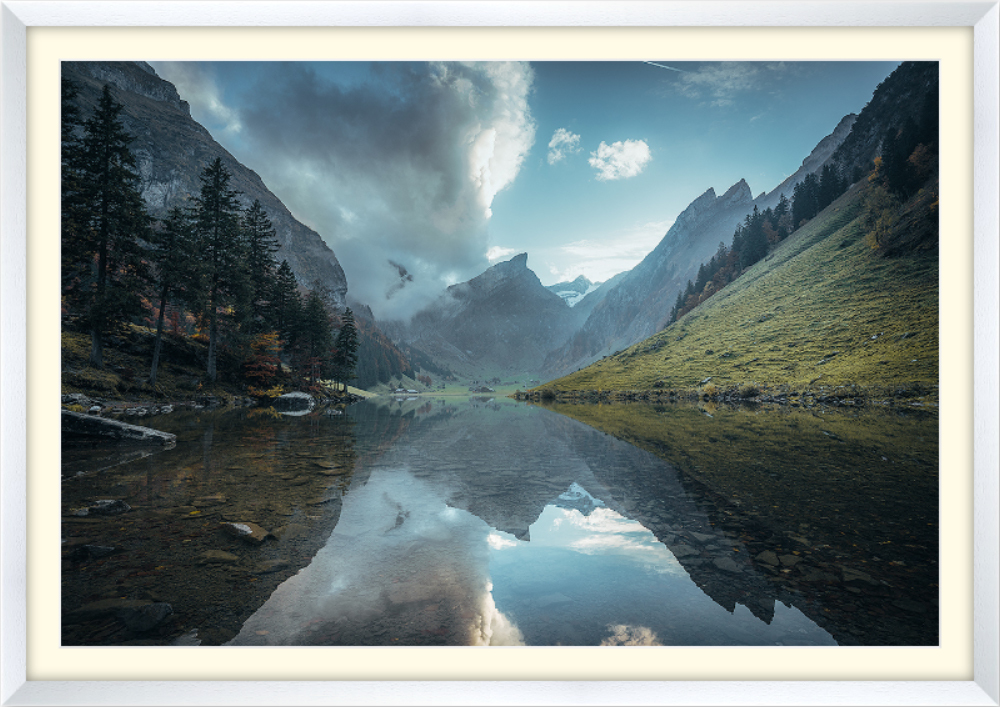 Die wohl edelste und hochwertigste Darstellung Deines Wandbildes. Das Alu-Dibond Fineart Hahnemühle wird in einem edlen Schattenfugenrahmen präsentiert. Die matte, weiß lackierte Holz-Schattenfuge bildet für lebendige Landschaftsbilder den beruhigenden Kontrast und unterstreicht die Wirkung des Motivs an der Wand.